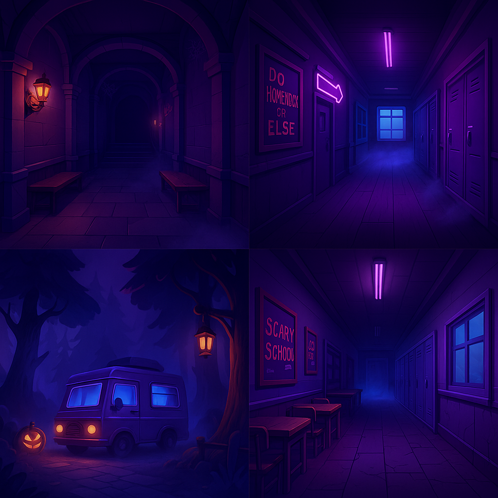 Core Experience: Players run endlessly through a haunted school corridor while an angry ghost teacher screams “WHERE IS YOUR HOMEWORK?” The goal: survive as long as possible, collect homework sheets, and use fun power-ups to escape tricky situations.